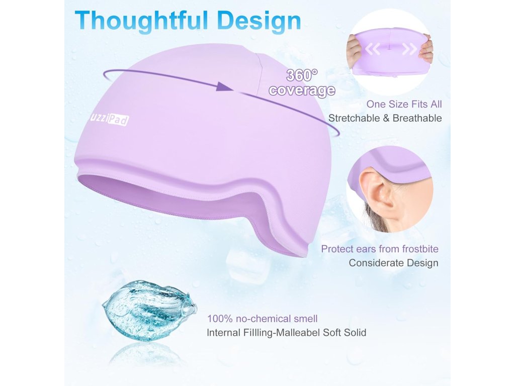 Univerzálna veľkosť: Ľadová čiapka je vyrobená z inovatívneho tvárneho gélu a elastickej Lycry, vďaka čomu je táto kombinácia flexibilná. Chladiaca čiapka je tiež ergonómicky navrhnutá s 360° obvodovým gélovým dizajnom, perfektne padne na vrchnú časť hlavy a poskytuje mierny tlak, nie je tuhá ako kocka ľadu, tesne a pohodlne prilieha k hlave. Predovšetkým špeciálny patentovaný dizajn chráni uši pred omrzlinami počas studenej terapie.